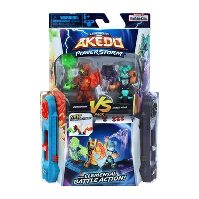 el paquete Versus incluye 2 guerreros y 2 controladores de batalla. Un guerrero es un NUEVO guerrero Super Splitter. Los Super Splitters tienen los poderes combinados de dos elementos y se dividen a través de sus cuerpos. ¡Hay tres Akedo Power Storm Versus Packs para coleccionar en la Serie 4, cada uno con una increíble pelea de rencor esperando que ocurra! ¿Tu guerrero estará en el equipo ganador y se convertirá en una Leyenda de Akedo? ¡Listo! ¡Luchar! ¡Golpe dividido! "