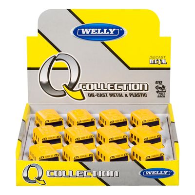Este pequeño autobús escolar de juguete, de color amarillo brillante y con retroceso, está hecho para las manitas de los más pequeños. De Welly, el Mini Autobús Escolar mide 5 cm de largo. Cada autobús escolar en miniatura es de color amarillo sólido, con ventanas tintadas en azul y la inscripción \"BUS ESCOLAR\" en la parte delantera. Las ruedas negras son suaves para facilitar su movimiento, y las ruedas traseras son más grandes que las delanteras. Fabricado con metal fundido a presión de la más alta calidad y materiales plásticos no tóxicos.