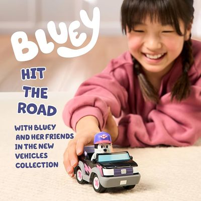 Los vehículos con figura de Bluey llevan la diversión de la serie al mundo real. Cada set incluye un vehículo temático y una figura de uno de los personajes favoritos, perfectos para recrear las aventuras más divertidas de Bluey y sus amigos.