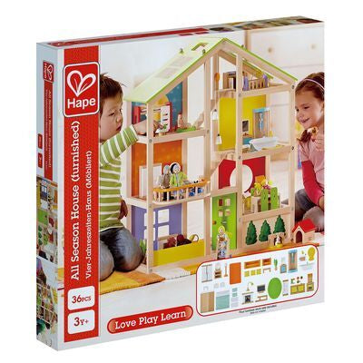 Esta casa de muñecas ofrece tantas formas de jugar como familias hay en este mundo. Seis habitaciones, escaleras libremente movibles y un techo reversible para verano e invierno con placas solares inspiran a muchas actividades durante todo el año.