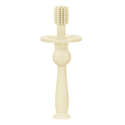 Las cerdas suaves de silicona proporcionan una limpieza de 360°, lo que da como resultado una mejor eliminación de la placa y más diversión que la limpieza con cepillos de dientes para niños convencionales. Nuestro cepillo de dientes está hecho 100 % de silicona y es perfecto para limpiar y masajear dientes y encías delicadas. Gracias a su ventosa, se puede guardar fácilmente en posición vertical sin que las cerdas entren en contacto con gérmenes ni suciedad.