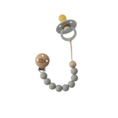 Chupetero fabricado en 100% silicona alimentaria y madera natural.