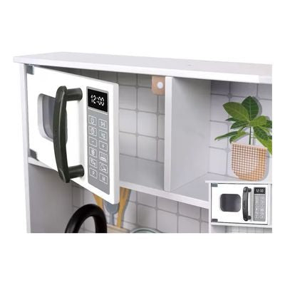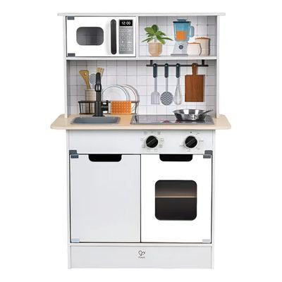 Este juego de cocina moderna de Hape es una manera fantástica de divertirse mientras aprende.