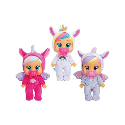 Las adorables Cry Babies Fantasy llegan para llenar de ternura y diversión el juego de los niños. Cada muñeca lleva un pijama temático de unicornio o criatura mágica y llora lágrimas reales cuando le quitas el chupete. ¡Abrázalas, cuídalas y consuélalas como a un bebé de verdad!