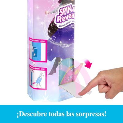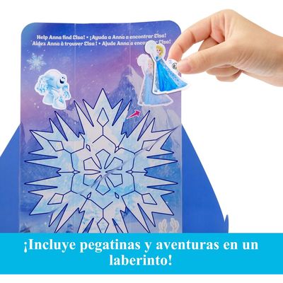 ¡La muñeca Anna de Frozen de Disney se vuelve mágica con esta experiencia de desempaquetado Spin & Reveal! Primero, abre la solapa del castillo para descubrir una escena de juego temática con una actividad divertida y siluetas para pegatinas. Luego, gira el paquete para encontrar 5 bolsitas sorpresa con 5 accesorios y 5 pegatinas. ¡La sorpresa final es una muñeca de moda de Anna con un hermoso atuendo inspirado en la película! Los niños también pueden decorar la escena de juego con pegatinas y completar el laberinto para ayudar a Anna a encontrar a Elsa, ¡igual que en la película! La muñeca no se sostiene sola. Los colores y las decoraciones pueden variar.