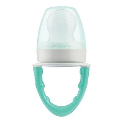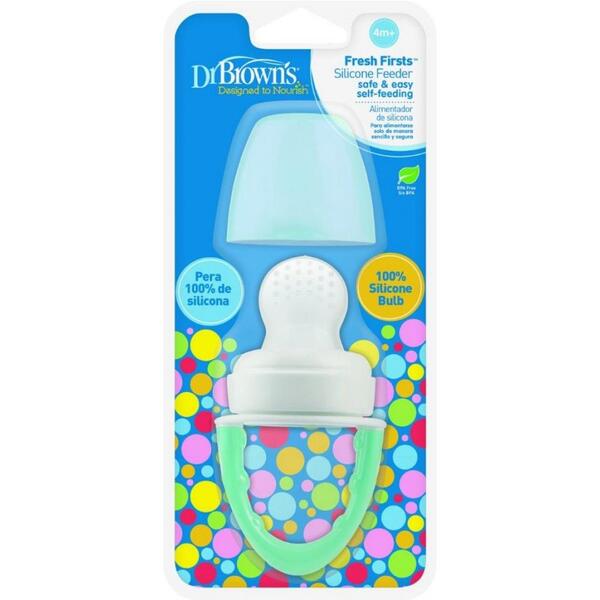 El alimentador de silicona Fresh Firsts tiene pequeños orificios que dejan pasar suficiente comida para que el bebé se alimente por sí mismo de manera segura. Es suave pero duradero y puede contener cualquier cosa, desde alimentos frescos hasta golosinas congeladas.