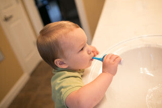 ¡Establezca una buena higiene bucal con el bebé y diviértase haciéndolo! El cepillo de dientes para bebés y niños pequeños está hecho de un material duradero pero suave que es suave para las bocas sensibles.