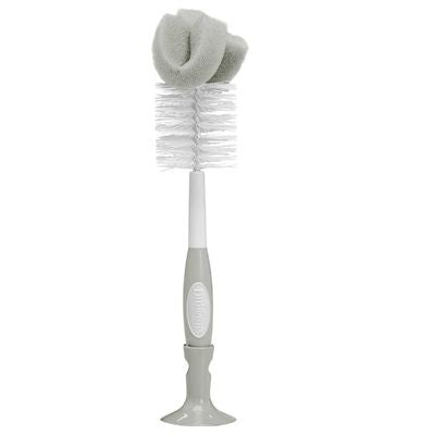 Dr. Brown s Cepillo de limpieza de biberones de esponja reutilizable con soporte de ventosa, estropajo estrecho y limpiador de pezones, gris, paquete de 1