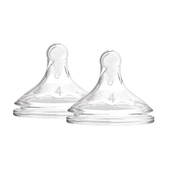 La exclusiva tetina de cuello ancho de Dr Brown’s Natural Flow Options+ Level 4 es una tetina de flujo rápido, diseñada para bebés que están más desarrollados o prefieren un flujo rápido. El rango de edad sugerido para la tetina de nivel 4 es de 9 meses+, pero la tasa de flujo preferida del bebé puede variar.