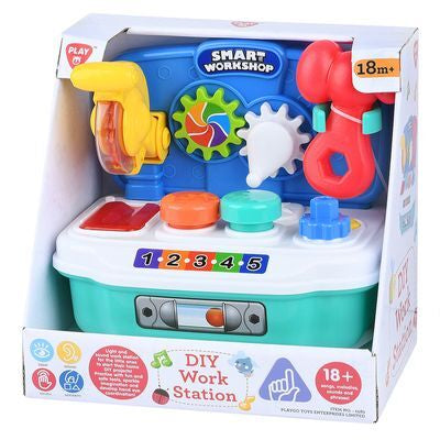 Estación de trabajo con luz y sonido para que los más pequeños comiencen sus proyectos de bricolaje en casa. Practiquen con herramientas divertidas y seguras, despierten la imaginación y desarrollen la coordinación mano-ojo.