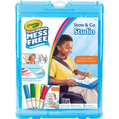 Crayola color wonder stow & go Studio es el compañero de viaje perfecto para tu artista sin líos Guarda todas tus herramientas de arte favoritas sin desorden en una funda fácil de usar. Los niños pueden acceder fácilmente al almacenamiento dentro del kit con cierres fáciles de abrir. Y cuando se trabaja en su arte actual sin desorden, pueden mantener el papel en su lugar con los clips que se quedan puestos. Crayola color wonder es un sistema patentado de coloración sin problemas. Los marcadores y pinturas de maravillas de color (se venden por separado) solo aparecen en papel de maravilla de color, por lo que puedes dejar a los niños a su arte sin preocuparte por la limpieza. La tinta especial es transparente en la mayoría de superficies y no mancha muebles, tela o piel. A los niños les encantará ver colores llamativos y deslumbrantes emergen como magia en la página.