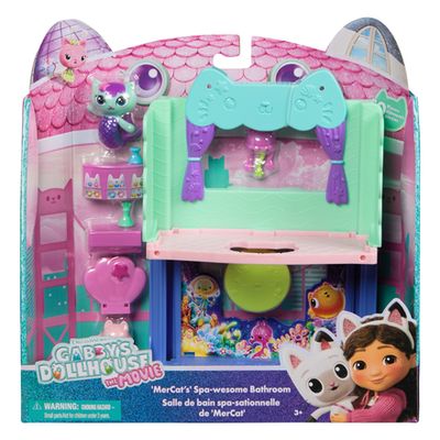 ¡Recrea momentos mágicos del universo de Gabby’s Dollhouse: The Movie con los adorables mini sets “Cakey’s Kitchen” y “Mercat’s Bathroom”!