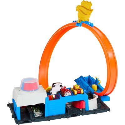 policía Hot Wheels City Super con su pista ajustable. Conduce el auto de