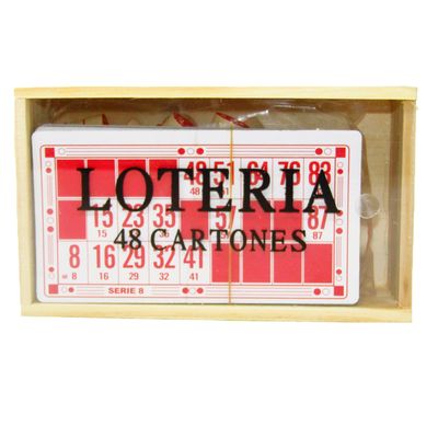Diviértete en familia con la tradicional Lotería Clásica, un juego ideal para reuniones y momentos de entretenimiento. Este set incluye 48 cartones, fichas numeradas y caja de madera para un almacenamiento práctico y duradero.