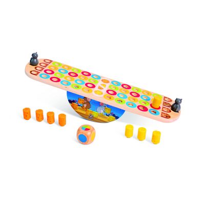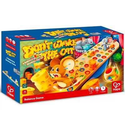 Don’t Wake the Cat es un juego de mesa de equilibrio y estrategia donde los pequeños ratoncitos deben cruzar la tabla sin despertar al temible gato que duerme cerca. Cada jugador avanza con cuidado, colocando piezas y moviendo su ratón sin dejar que la tabla pierda estabilidad.