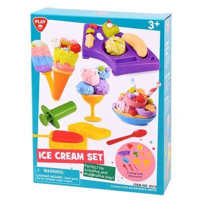 Vamos a la heladería. El SET HELADOS DE PLASTILINA PLAY tiene todo lo que necesitas para un juego creativo e imaginativo, crea helados, paletas, ensaladas de frutas o postres, diviértete mezclando los colores de la plastilina para obtener un sin número de opciones. El set incluye moldes para un juego más real. Invita a tus amiga y comparte con ellas un momento especial y único.