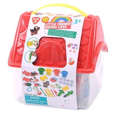 Kit de 20 piezas. El juego de masa de granja incluye todo lo que necesita: 4 x 2 oz. ollas de masa, 6 cortadores de animales, 4 moldes de animales, espátula, 2 herramientas de modelado, 2 tiradores de masa en un maletín de transporte.