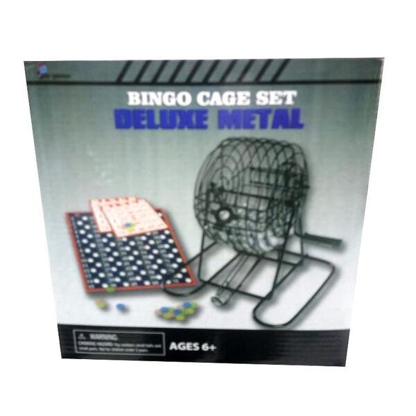 Artículo No. 945 Juego de jaula de bingo de metal Contenido del juego: • 1 jaula de bingo de metal • 75 bolas numeradas • Tarjeta de bingo maestra • 17 tarjetas de bingo de doble cara • 150 marcadores de bingo • 1 instrucciones Tamaño de caja de color al por menor: 21 x 20.5 x 21.5 cm