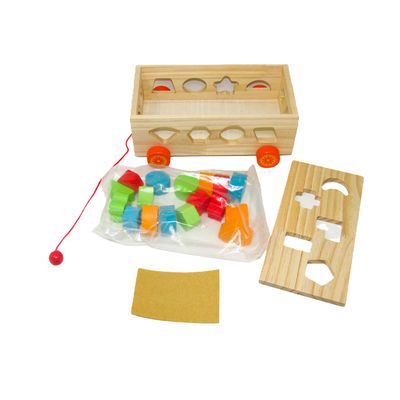 Clasificador de Formas de Madera: Juguete didáctico de madera con figuras geométricas de colores, ideal para que los niños aprendan a reconocer formas, colores y mejorar su coordinación motriz. Incluye cuerda para arrastrar el remolque y piezas encajables que estimulan el aprendizaje activo.