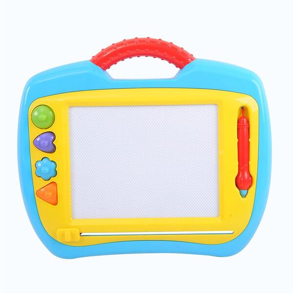 Pizarra de dibujo magnética Playgo. ¡El dibujo magnético es más divertido en color! Dibuja, juega, escribe una y otra vez y simplemente desliza el botón del borrador para borrar la pantalla y comenzar de nuevo. ¡Perfecto para jugar estés donde estés!