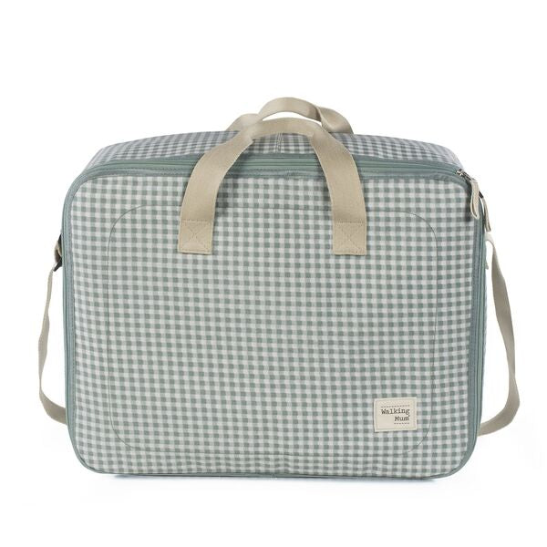 La maleta I Love Vichy verde de Walking Mum es ideal para preparar la llegada de tu bebe. Es cómoda, ligera y manejable gracias a su correa larga para llevar colgada del hombro y asas cortas de mano. Además en el compartimiento interior tiene un forro con gomas para contener la ropa y mantener todo en su lugar.