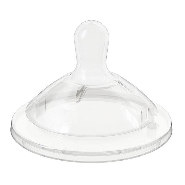 La tetina NaturalFeeling Flujo papilla se recomienda a partir de los 6 meses, cuando se introduce la alimentación en papilla o leche con cereales. Con forma alargada, se adapta a la forma de succión de los bebés más mayores. Tiene una base menos abombada específica para el apoyo labial.