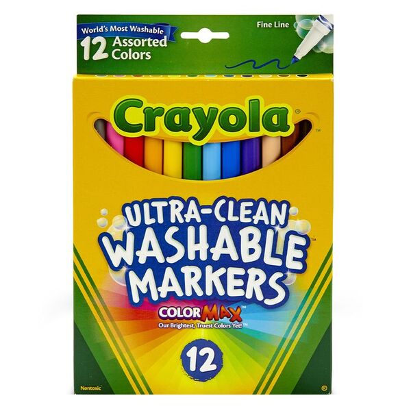 Color rico y maravilloso con el beneficio añadido de la facilidad de lavado simple. Lavable de piel, ropa y paredes pintadas, el marcador más lavable del mundo. ColorMax™ colores - ¡Los colores más brillantes y verdaderos de Crayola hasta la fecha! Tinta a base de agua. Tipo de tinta del marcador: lavable; Tipo de punta de marcador: Viñeta; Tamaño de la punta del marcador (texto): Fino; Color(es) del marcador: Surtido.