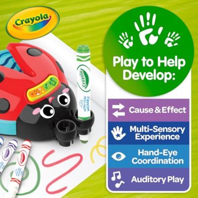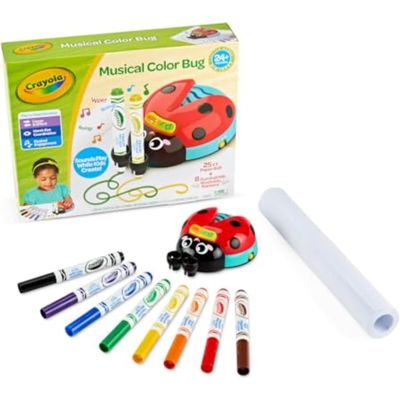 ¡Sumérgete en un mundo mágico de coloración musical con el Crayola Musical Color Bug! Este divertido juguete cuenta con 8 sonidos preprogramados, 15 hojas gigantes para colorear y 8 marcadores lavables Ultra Clean que se limpian fácilmente de la piel, la tela y las paredes. Observa cómo los niños mueven el Color Bug para crear una sinfonía de sonidos: elige el modo Color Bug para 4 ruidos disparatados o el modo Música para 4 melodías divertidas. Con el volumen ajustable, puedes mantener la diversión al nivel perfecto. Este juguete educativo despierta la creatividad, mejora las habilidades motoras y enseña causa y efecto. Perfecto para niños a partir de 2 años, ¡es un regalo fantástico para cualquier ocasión! (Requiere 3 pilas AAA, se venden por separado).