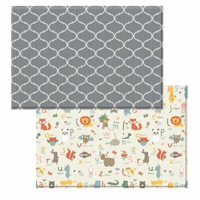 El tapete de juego BabyCare Boho Grey & Alphabet para bebés y niños presenta un sutil diseño bohemio en un lado y en el otro, un tapete divertido, interactivo y educativo con colores y el alfabeto para que su hijo aprenda y ame el tiempo de juego.