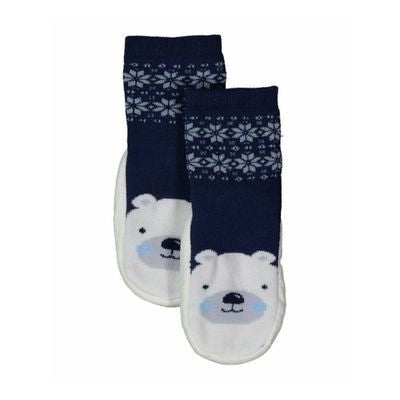 Medias para niño estilo pantufla con antideslizantes color azul con diseños de oso polar