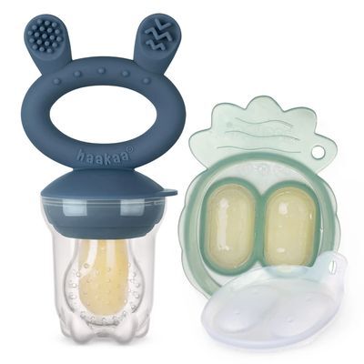¡El Mini Combo Freeze-N-Feed es la manera perfecta de presentarle nuevos sabores a su bebé de manera segura y al mismo tiempo brindar un alivio refrescante para las encías durante la dentición! Combinando el siempre popular Fresh Food Feeder con una versión mini de nuestra Pineapple Nibble Tray, esta combinación congela porciones de comida de tamaño perfecto, lo que le permite a su hijo explorar nuevos sabores y texturas sin riesgo de asfixia. Este juego es lo suficientemente pequeño como para caber en tu bolso, por lo que siempre lo tendrás a mano cuando estés fuera de casa. Lo mejor de todo es que el Mini Combo Freeze-N-Feed es súper fácil de usar. Simplemente llene los compartimentos de la bandeja Nibble con leche materna, alimentos en puré u otros alimentos favoritos y congélelos. Saque uno cuando sea necesario y colóquelo en la bolsa del alimentador, ensamble y selle herméticamente. Para aquellos que necesitan más golosinas, la bandeja para picar piñas de tamaño completo (se vende por separado) viene con NUEVE compartimentos enormes, ¡lo que te permitirá seguir funcionando por más tiempo! Su pequeño disfrutará de tener la capacidad de experimentar nuevos sabores y texturas y desarrollar su independencia, además de obtener un alivio calmante para las encías durante la dentición.