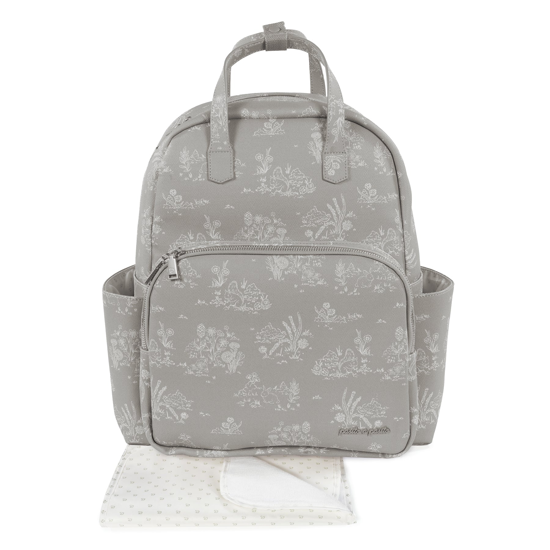 Mochila en polipiel impresa Toile de Jouy Forest. De gran capacidad para llevar todo lo que necesitas tu y tu bebé. Bolsillos interiores y exteriores para tenerlo todo a mano y en orden. Tiene un bolsillo interior térmico para biberones y un bolsillo plastificado para la ropa mojada. Bolsillo exterior frontal con cierre de cremallera y dos bolsillos laterales para botallas o biberones. Compartimento para portátil o tablet. Tiene 2 asas grandes ajustables para que puedas usarla colgada a la espalda y otras dos asas pequeñas para que puedas usarla colgada del carrito del bebé. Incorpora una cinta trasera para sujetarla a la maleta trolley. Se puede lavar a mano o a máquina a temperaturas de hasta 30º. Los productos para bebé de Pasito a Pasito cuentan con un diseño muy diferente a todas las demás. Sus colecciones se caracterizan por el trabajo al detallada, pensadas siempre desde un punto de vista práctico. Utilizan materiales de primera calidad para remarcar la elegancia y la armonía en cada una de sus piezas. Los modelos son exclusivos y de estilo inconfundible, pensados para madres actuales que gozan de buen gusto y que aprecian los detalles.