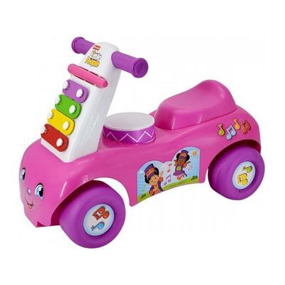 El correpasillos Fisher Price está destinado a niños de entre 12 y 36 meses y que no pesen más de 20 kg. El niño puede sentarse sobre él y moverse empujándose con las piernas. Contiene 2 instrumentos musicales: un platillo básico con 4 teclas de colores colocado en la parte delantera del correpasillos y un tambor integrado delante del asiento. Ambos instrumentos se pueden tocar usando el palo incluido con una cuerda, que se puede colocar en la parte delantera del correpasillos después de tocar.
