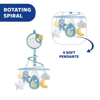 Diseñada por Chicco para ser el socio ideal para combinar con la cuna Next2Me, pero que también se puede instalar rápidamente en la mayoría de las cunas de madera, la Next2Dreams Mobile es una moderna caja de música electrónica que reproduce música y sonidos capaces de relajar rápidamente a tu bebé.