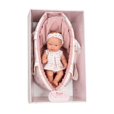 Muñeca Elegance 26cm Pillines Rosa con Cunita Portable