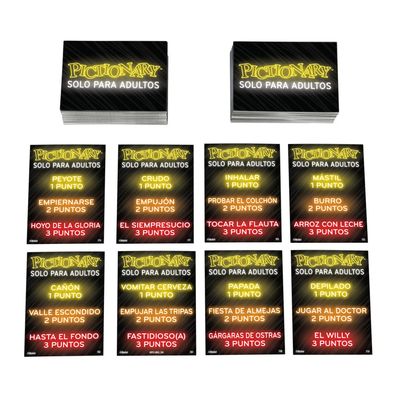 Pictionary es un clásico que se juega desde 1985, y se ha posicionado como uno de los principales juegos de dibujo en una carrera contra el reloj, ya que impulsa al máximo tu creatividad. Sumérgete en una experiencia inolvidable de diversión sin límites con Pictionary Solo para Adultos, donde la emoción y el ingenio se combinan. Este juego desafía tu creatividad y tus habilidades de adivinanza en un ambiente picante y lleno de risas. ¡Suma puntos y avanza en el tablero hacia la victoria!