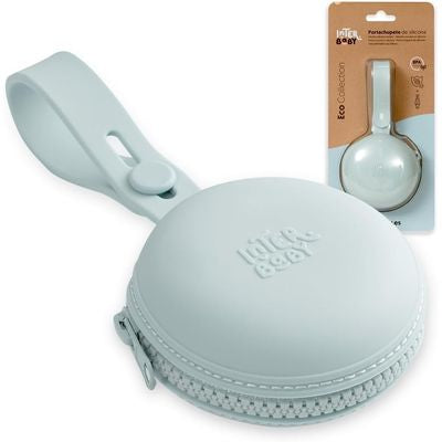 Estuche para bobo 100% silicona de grado alimenticio para guardar y mantener limpio el bobo del bebé en todo momento. Cierre con cremallera. Se puede enganchar al cochecito o al bolso.