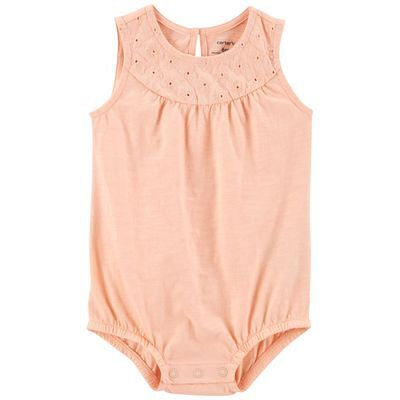 Fabricado en tejido de punto suave de algodón y sin mangas, con este romper estará lista para los días soleados.