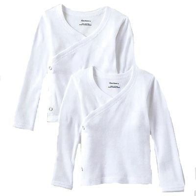 Las camisas Gerber de manga larga con broches laterales son excelentes como una pieza de capas, hechas de algodón 100 por ciento para mayor comodidad y suavidad, diseñadas con broches en el costado para vestirse sin complicaciones porque no tienen que pasar por encima de la cabeza del bebé y tienen una manopla incorporada. puños para evitar rayones, paquete de 3 blancos disponible en tallas para recién nacidos y 0-3 meses, lavar y secar a máquina, excelente artículo para regalar.