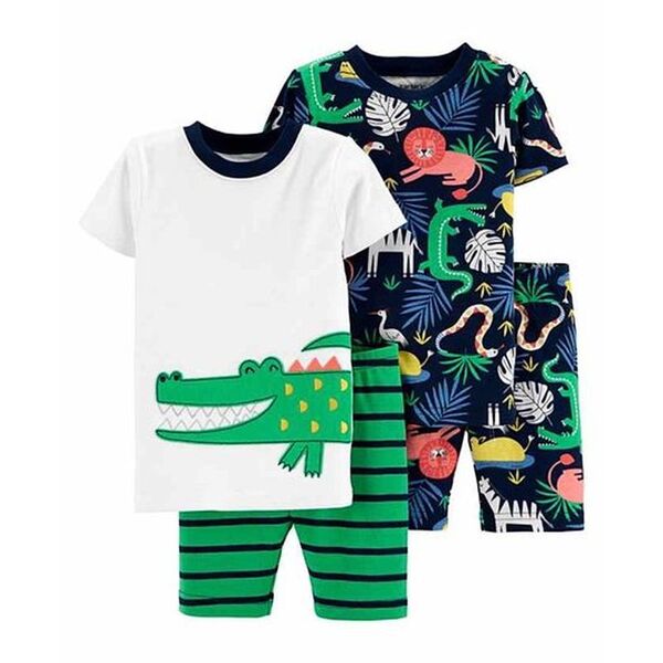 Traje de noche de algodón con ajuste ceñido de cocodrilo de 4 piezas de Carter - Blanco Azul Verde