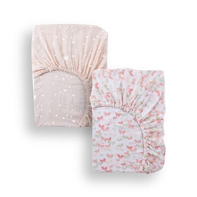Este encantador set de sábanas para cuna está diseñado para brindarle a tu bebé la máxima comodidad durante el descanso. Confeccionado con algodón suave y transpirable, el set incluye 2 sábanas ajustable. El delicado estampado de mariposas en tonos rosado pastel crea un ambiente tranquilo y acogedor, perfecto para una noche de sueño reparador. Además, su ajuste elástico garantiza que la sábana permanezca en su lugar durante toda la noche. Fácil de lavar y duradero, es ideal para el uso diario.