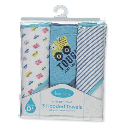 Pide ya las toallas con capucha para completar la hora del baño con este paquete de 3 de Bon Bebe!. Juego de 3 toallas con capucha Bon Bebe Estampados diseños como se muestra Extra absorbente 60 % algodón, 40 % poliéster Lavar a máquina en frío