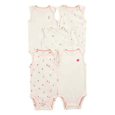 ¡Abastécete de este básico de armario para bebé! Este pack de 5 bodys tiene características que encantarán a los padres, como hombros superpuestos y broches resistentes en las piernas para vestir y cambiar al bebé fácilmente. Estos bodys de manga corta son perfectos para el clima cálido y se pueden usar solos o en capas debajo de otras prendas.