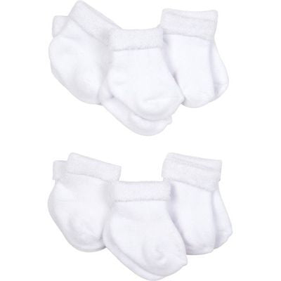 ¡Ningún cajón de calcetines está completo sin los clásicos blancos! Están hechos de una mezcla de algodón, nailon y elastano que es segura y cómoda. La tela suave para bebés tiene la certificación OEKO-TEX para darle la tranquilidad de que ninguna sustancia nociva tocará la piel de su bebé. ¡Estos calcetines utilizan una tecnología a prueba de movimientos que evita que los dedos de los pies más activos los muevan!