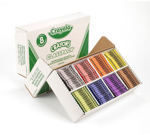 ¡Este Crayon Classpack a granel incluye suficientes suministros para toda la clase! Un total de 800 crayones están incluidos en este conjunto. Hay 100 crayones de tamaño regular en cada uno de los siguientes 8 colores: amarillo, azul, verde, marrón, rojo, negro, naranja y violeta.Regístrate ahora para recibir promociones y ofertas.