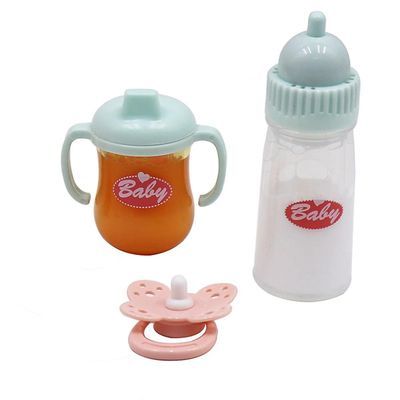 biberón mágico con sonido, vaso de jugo mágico y chupete. Requiere 2 baterías