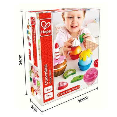 ¡Es hora de un dulce aperitivo! Realiza tus propias creaciones de cupcakes para jugar con este conjunto elaborando cuatro cupcakes y una gama de aderezos espectaculares que incluyen una vela, frutas y una oblea.Primero coloque cada uno de los cuatro cupcakes en los cuatro moldes. Ahora puedes hacer tus propias magdalenas geniales con los diferentes ingredientes. Sirve tus cupcakes a tus amigos. Luego prueba diferentes combinaciones.