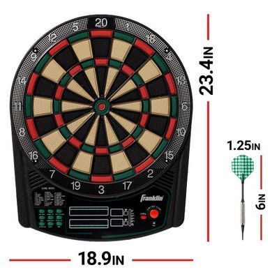 Set Dardo - Electronico Tip Suave¡El tablero de dardos electrónico Franklin Sports FS5000 es el complemento perfecto para cualquier sala de estar, dormitorio, oficina y más! Este juego completo viene con el tablero de dardos de tamaño oficial, (6) dardos de punta suave y (6) puntas de repuesto, por lo que solo necesita enchufar y jugar para comenzar el juego. Elija entre 28 tipos de juegos programados con más de 100 variaciones incluidas y deje que el marcador LED incorporado mantenga la puntuación para que pueda concentrarse en el juego. Este juego de diana es tan fácil y versátil como parece, además con los dardos de punta blanda, este juego también es seguro para tus paredes y perfecto para que los niños se unan a la diversión. ¡La FS6000 es la diana perfecta para jugadores de todas las edades!