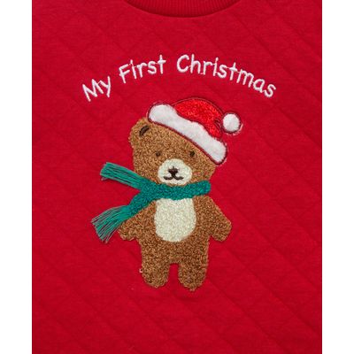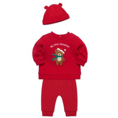 Este conjunto de joggers navideños para bebés recién nacidos que presenta un osito navideño y material de punto doble es el regalo perfecto para iniciar las festividades.