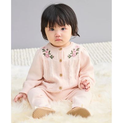 Un conjunto de suéter acogedor para bebés niñas condelicadas flores en el escote y pantalones a juego.